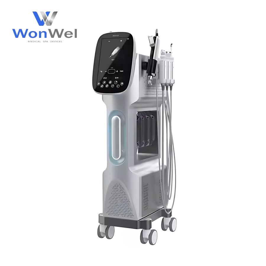 Máy Chăm Sóc Da 9in1 WonWel WB09 – một trong những thiết bị chăm sóc da đa chức năng và toàn diện nhất mà WonWel tự hào phân phối. Trong ngành thẩm mỹ hiện đại, việc sở hữu một thiết bị tích hợp nhiều công nghệ tiên tiến là yếu tố then chốt giúp các spa và thẩm mỹ viện tối ưu hóa không gian, giảm chi phí đầu tư, đồng thời nâng cao đáng kể chất lượng và sự đa dạng của các liệu trình dịch vụ. WonWel WB09 chính là lựa chọn lý tưởng, mang đến giải pháp chăm sóc da chuyên sâu, toàn diện từ làm sạch đến trẻ hóa, giúp spa của bạn khẳng định vị thế dẫn đầu.